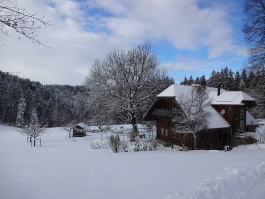 Sie finden Ruhe und Erholung im eingebauten Studio für 1-4 Personen. Ringsum biodiverse Wiesen und Hecken, ein Teich, Wald, im Naturpark Gantrisch ... mehr!