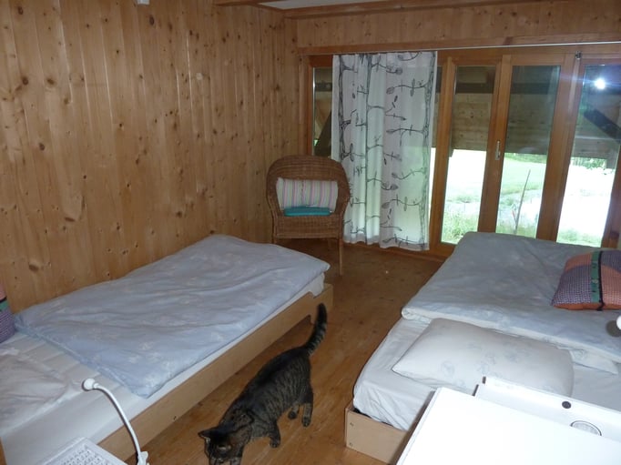 Hinweise zum Studio: es hat Balken auf der Höhe von 180 cm. Wer also grösser ist, muss immer mal wieder den Kopf einziehen. Das Holzhaus ist sehr hellhörig: Sie hören unsere Kaffeemaschine, Tritte, Wassergeräusche.